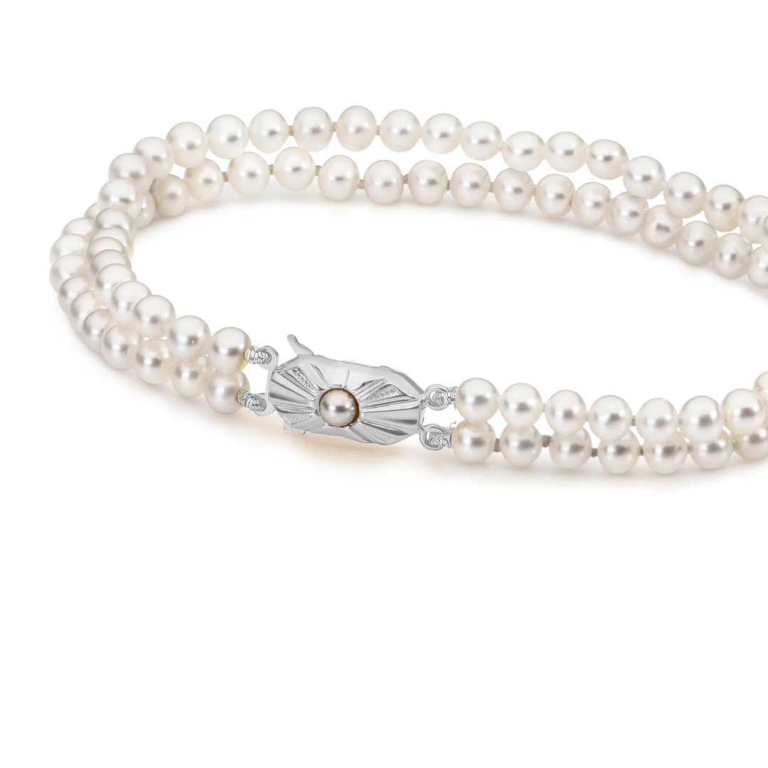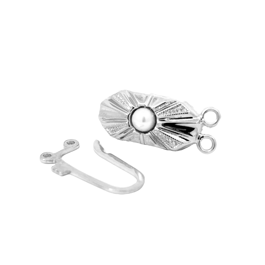 Designed for double-stranded pieces, this sterling silver clasp is finished with a dainty pearl detail for a soft, elegant touch. Both functional and decorative, it adds a refined finish to your necklace or bracelet while keeping strands beautifully aligned.