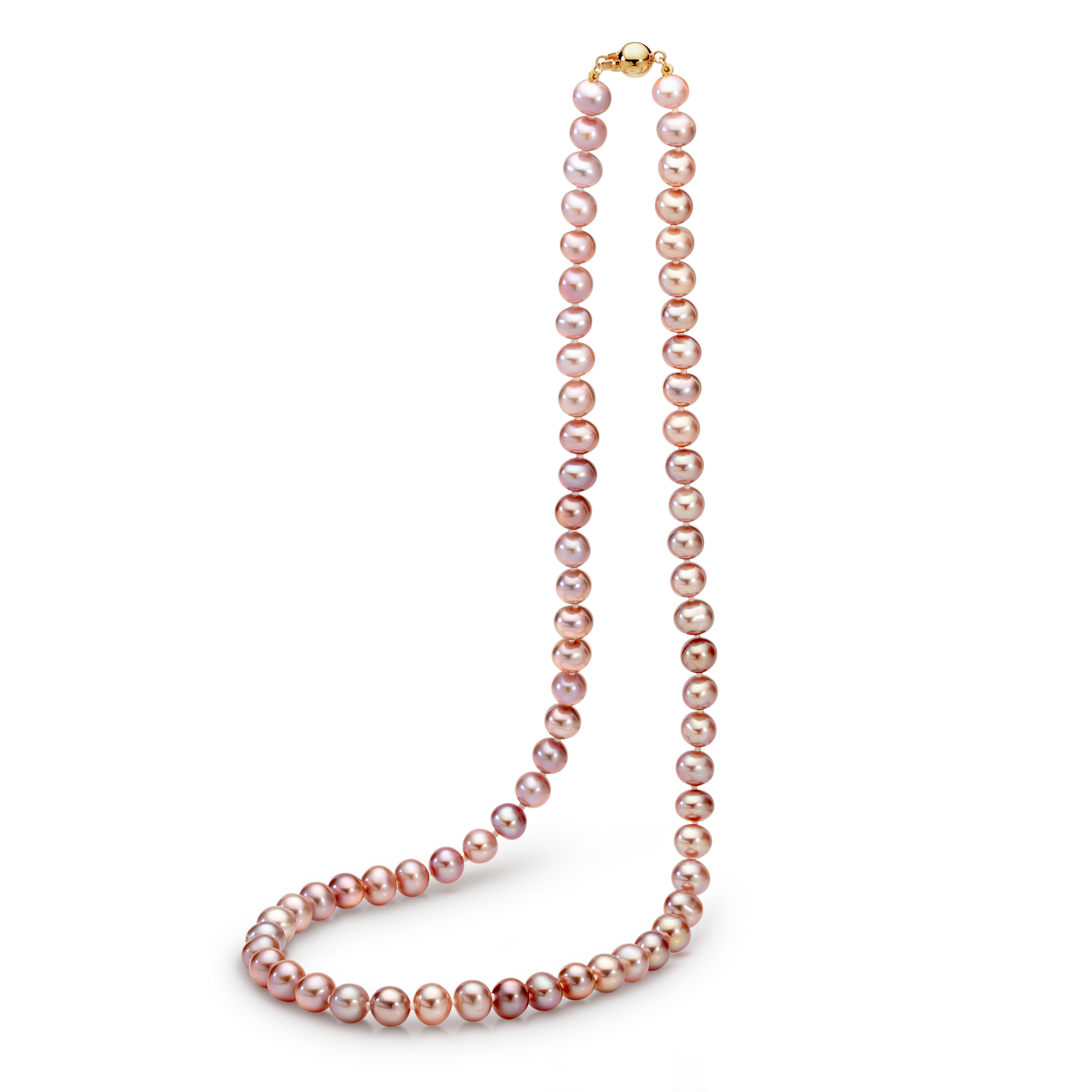 Soft, feminine, and effortlessly elegant. The Rose Necklace showcases exquisite natural pink Freshwater pearls, a symbol of grace and sophistication. Finished with a classic yellow gold or sterling silver ball clasp for easy wear, this timeless piece is perfect for any occasion. Available in a range of sizes to suit your style.