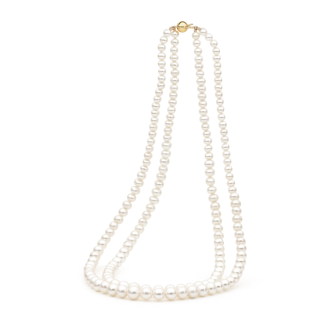 Elevate your style with our exquisite graduated double row freshwater necklace, a flawless fusion of individuality and understated elegance. Featuring a luxurious ball clasp and double strands for added dimension, its effortless versatility ensures it's the ideal choice for every occasion.