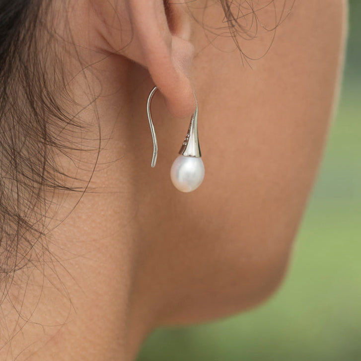 Versatile and timeless, the Foxglove Earrings are the perfect finishing touch to any look. Featuring luminous Freshwater drop pearls on classic Shepherd hooks, they offer a refined simplicity that transitions effortlessly from casual to formal wear. Designed to complement other pieces, these earrings add a subtle yet sophisticated touch to any jewellery collection.