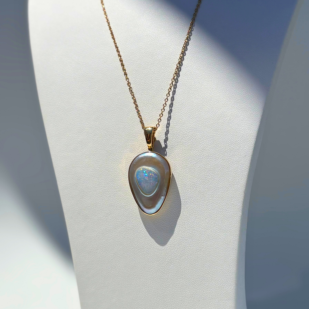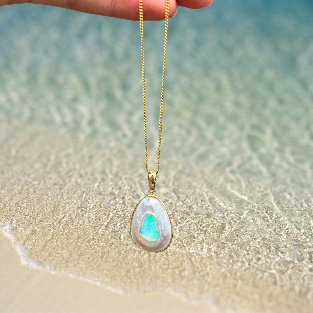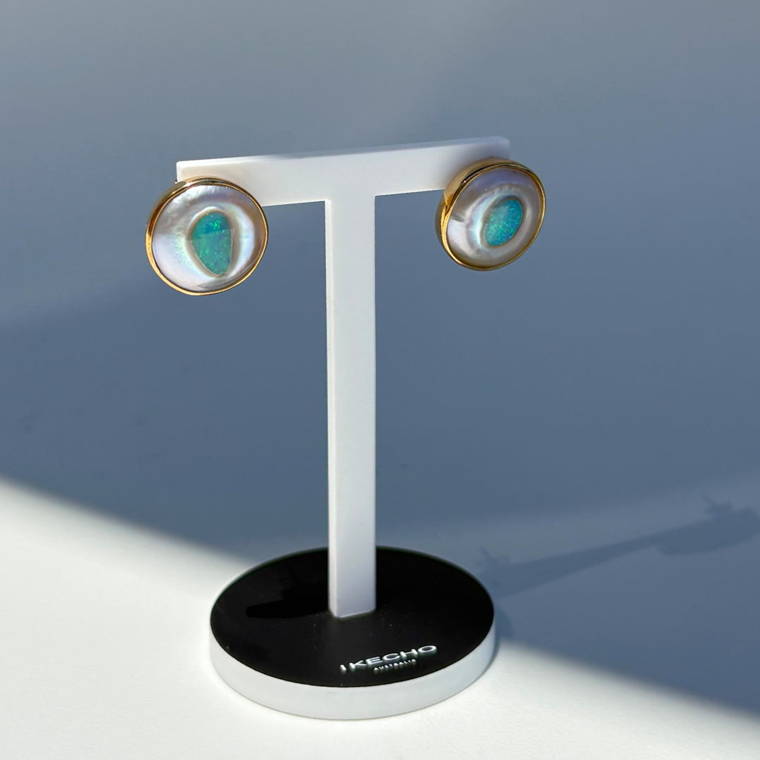 Explore the exclusive limited collection of Earth+Ocean Jewellery, featuring a unique blend of Solid Opal from South Australia and South Sea Mabe pearls from Western Australia. Each piece is handcrafted, showcasing opals encased in nacre layers by Batwing Oysters. This meticulous process creates stunning, one-of-a-kind jewellery that captures the essence of Australia's natural beauty.