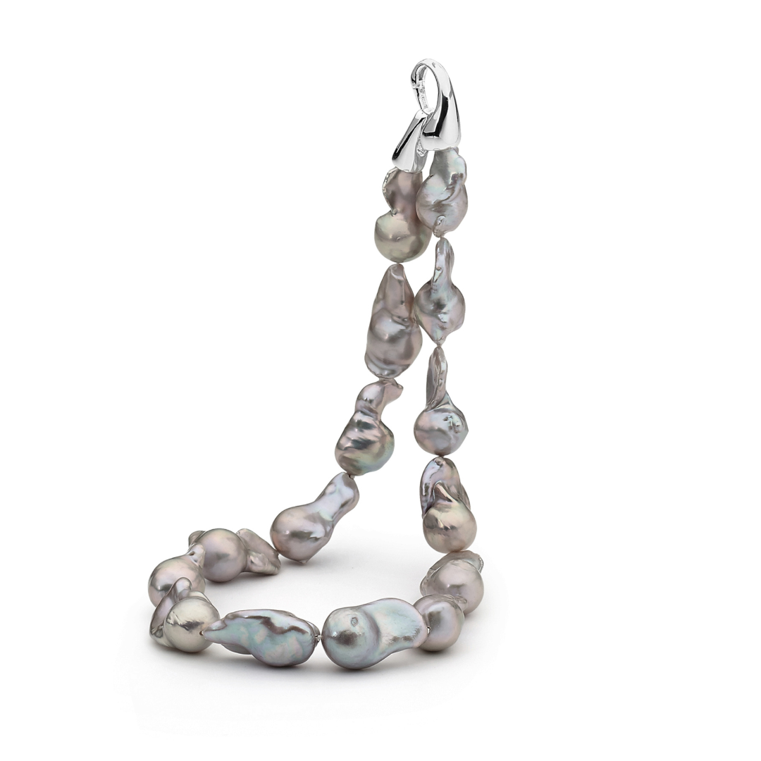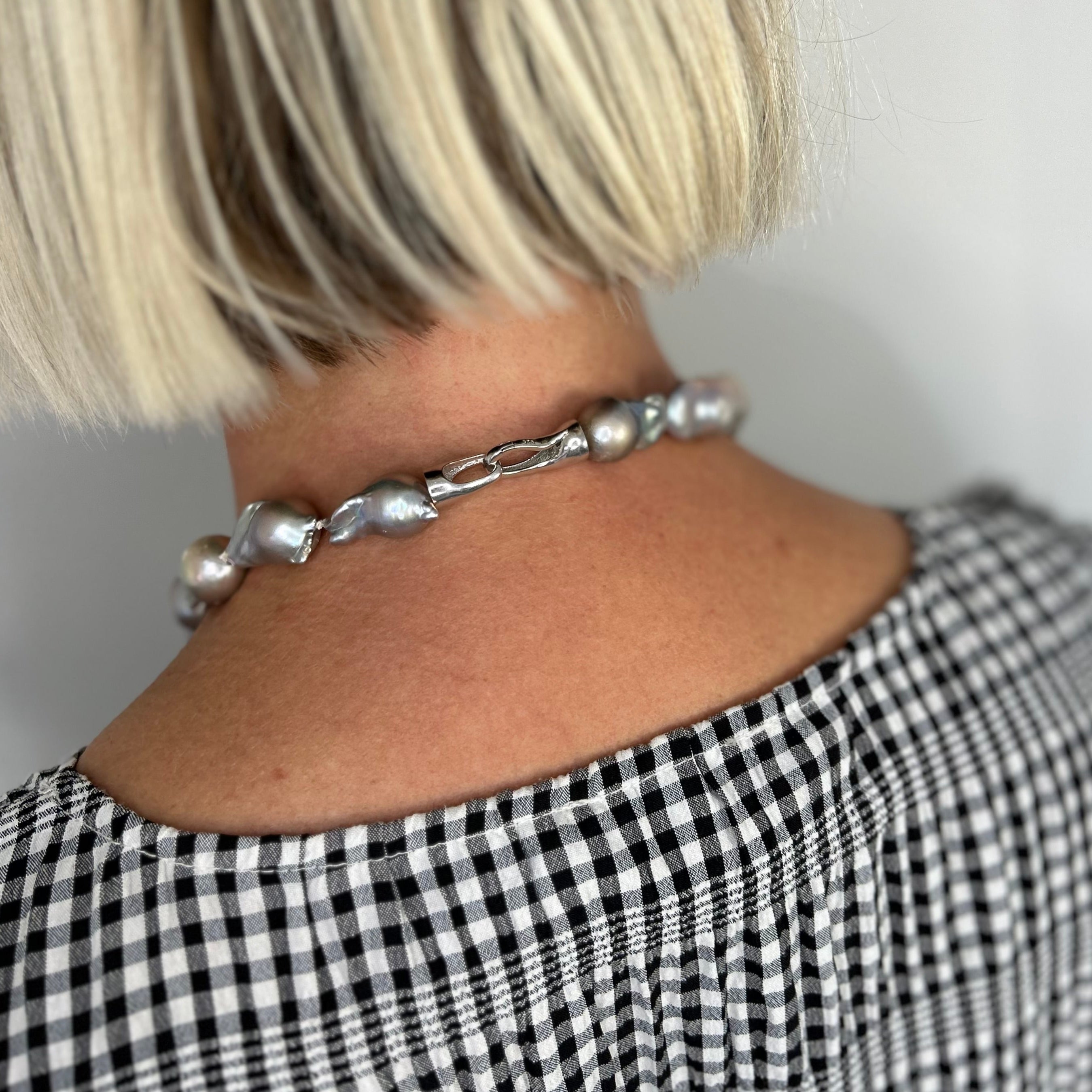 Each Mercury Necklace is truly one of a kind, celebrating individuality with its Baroque nucleated freshwater pearls. The unique mix of textured, alternating pearl colours creates a stunning blend of character and elegance. Finished with a Sterling Silver clasp, this effortlessly stylish piece is perfect for any occasion.