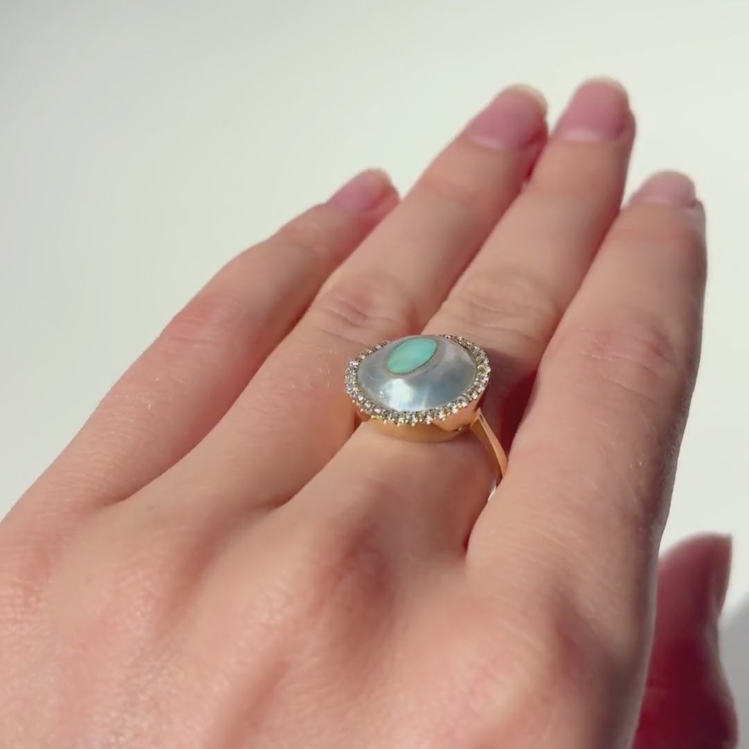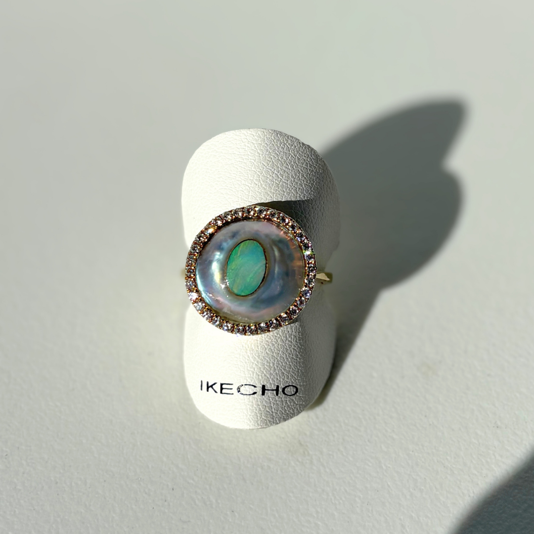 Discover this stunning piece from the Earth+Ocean Jewellery collection, featuring a unique Solid Opal and South Sea Mabe Pearl. Each piece showcases a natural fusion of opal encased in nacre layers by a Batwing Oyster, creating a one-of-a-kind treasure. This collection captures the essence of natural beauty, offering exclusive jewellery that seamlessly blends oceanic and earthy elements through a remarkable natural process.