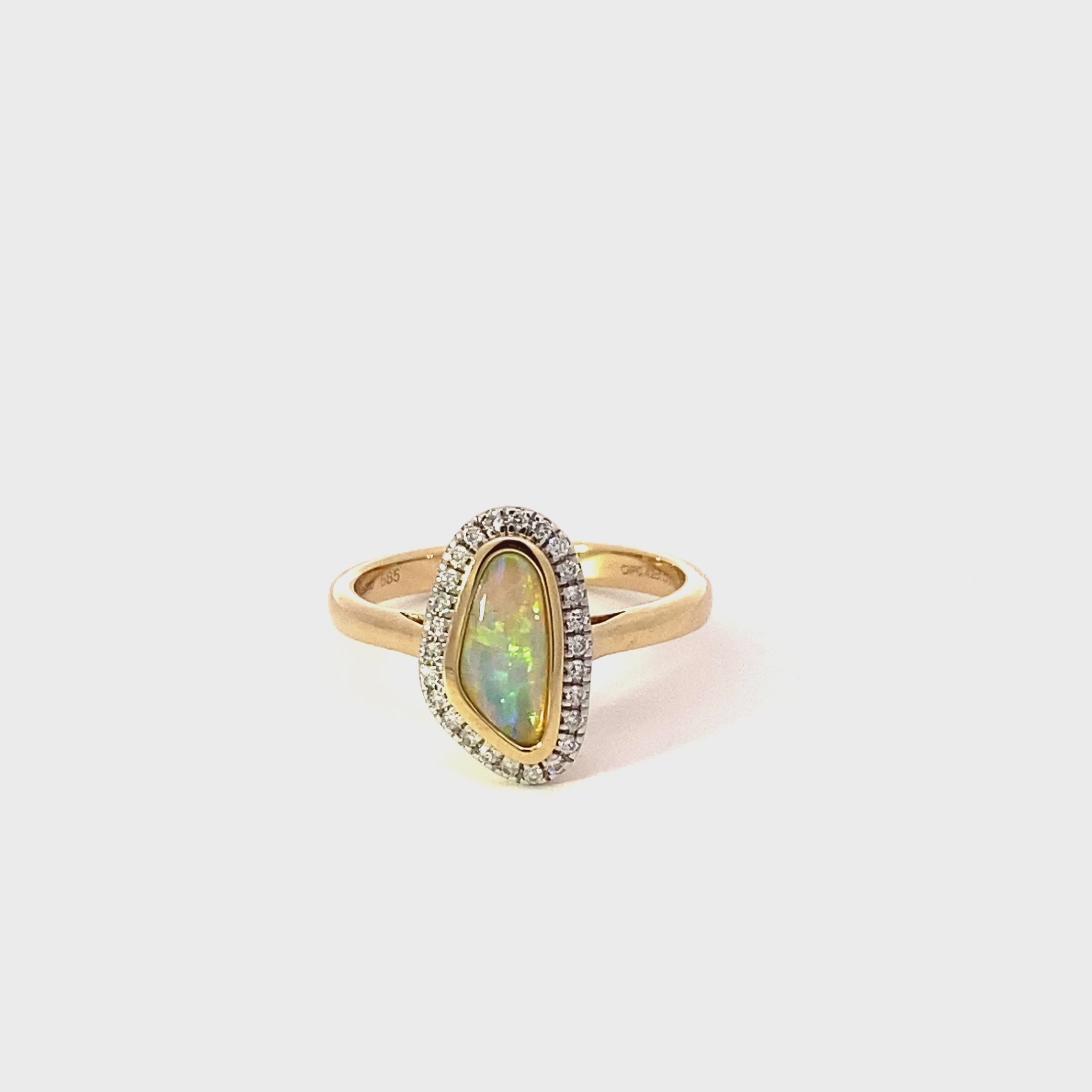 14ct yg Solid Light Opal SA 0.42ct dia ring Dia: 0.12ct