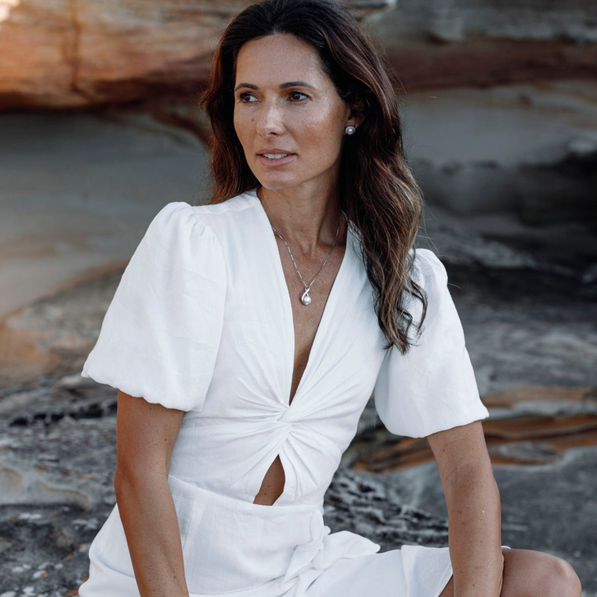 Introducing the Elma Pendant, a sterling silver creation inspired by fluidity and grace. Its vertical figure-eight design exudes contemporary elegance, with a luminous button-shaped freshwater pearl at the heart of the bottom curve. Delicate cubic zirconia grace one length of its captivating silhouette, adding a mesmerizing sparkle to its allure.