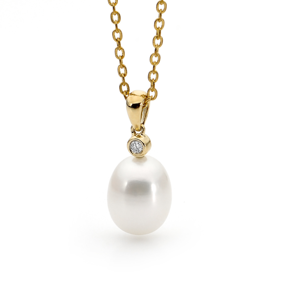 Introducing our Mary Pendant: a stunning fusion of elegance and sophistication. Featuring a diamond stud bail, this freshwater drop pearl pendant exudes timeless beauty. Elevate any outfit effortlessly with its subtle yet captivating charm, perfect for every occasion.
