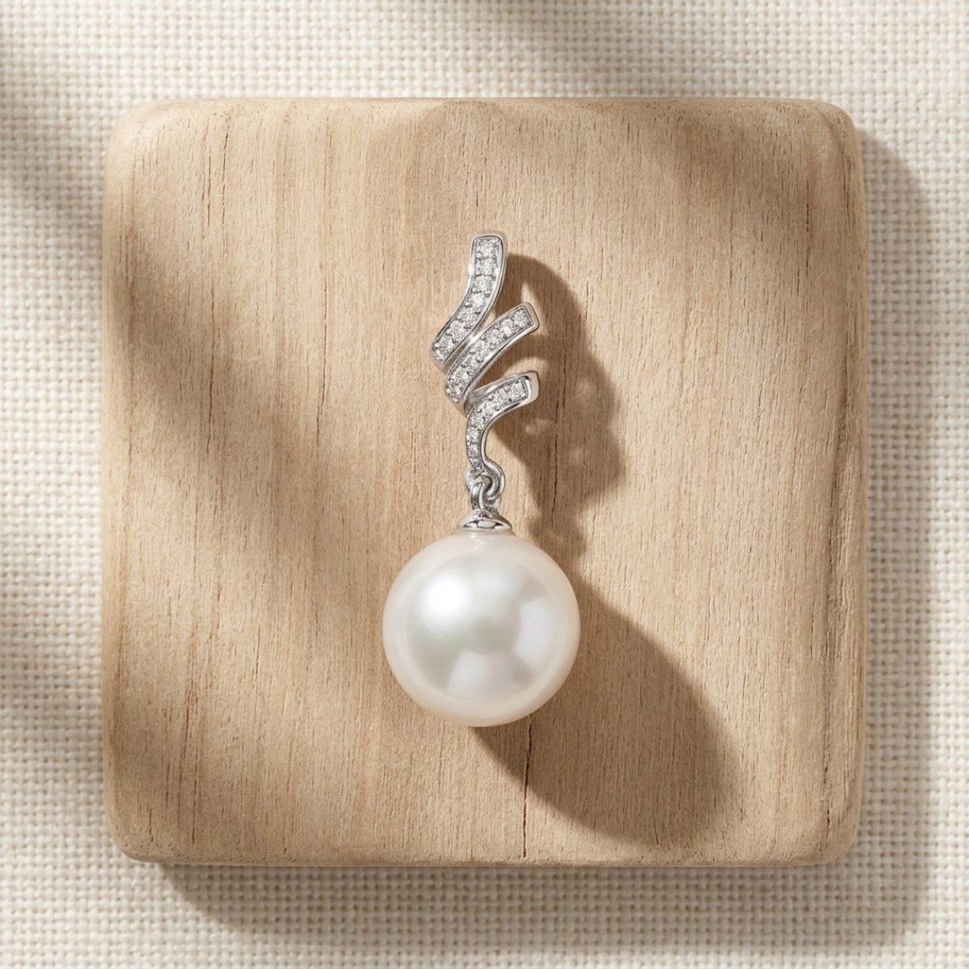 A graceful expression of quiet elegance, the Ribbon Pendant features a sterling silver bail shaped in a soft ribbon wave, set with sparkling cubic zirconias. At its centre sits a luminous freshwater Edison pearl, chosen for its natural beauty and glow. Designed to feel timeless yet modern, it’s a piece you’ll reach for every day and treasure for years to come.