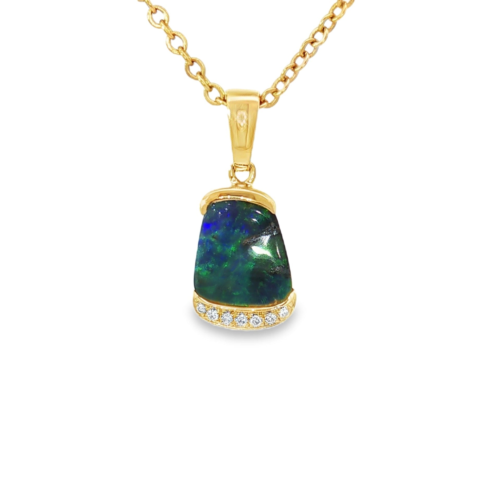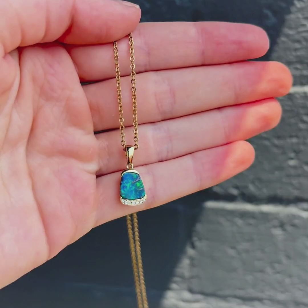 Sapphire Green Boulder Opal Pendant 025