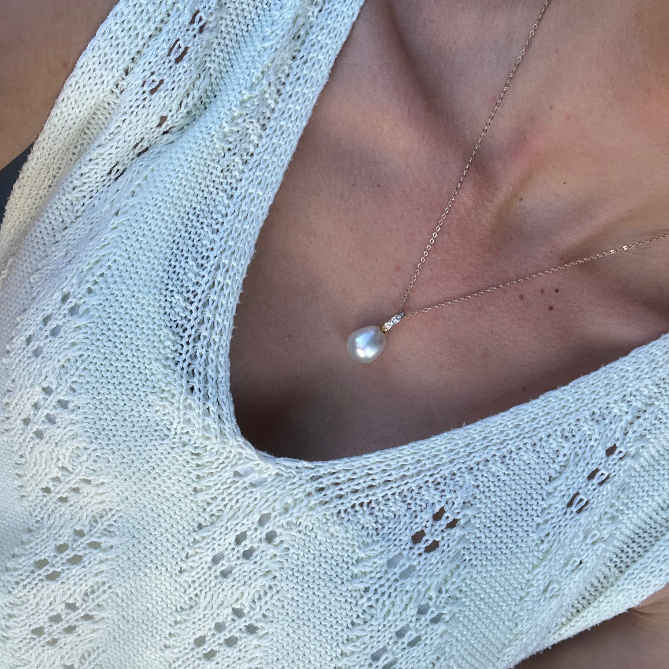 The Sophia South Sea Enhancer features a stunning Australian South Sea drop pearl, known for its exceptional lustre and natural beauty. Suspended from an elegant enhancer setting with an opening bail, this piece offers versatility and sophistication, easily pairing with different chains or necklaces. Whether worn for a special occasion or as an everyday statement, the Sophia South Sea Pendant adds timeless elegance to any jewellery collection.