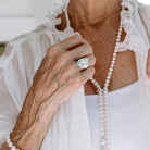 Celebrate the artistry of imperfection with this extraordinary hand-finished ring. The sterling silver band and the lustrous white Keshi freshwater pearl both bear the distinctive marks of meticulous craftsmanship, creating a one-of-a-kind piece. The irregularities in both the metal and the pearl contribute to the ring's unique charm, making it a timeless and elegant expression of natural beauty.