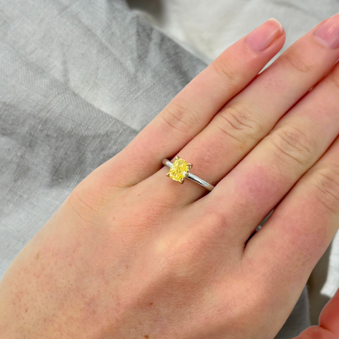 Fancy Yellow Cushion Lab-Grown Diamond Ring 019