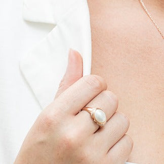 When it comes to opulent classics with a creamy, flawless edge, our white Mabe cultured pearl ring is must-have. With a sleek and simple design set in 9ct Rose Gold with diamonds, this ring is an extremely versatile piece that is perfect for everyday wear, or perfect on its own to make a stylish statement.