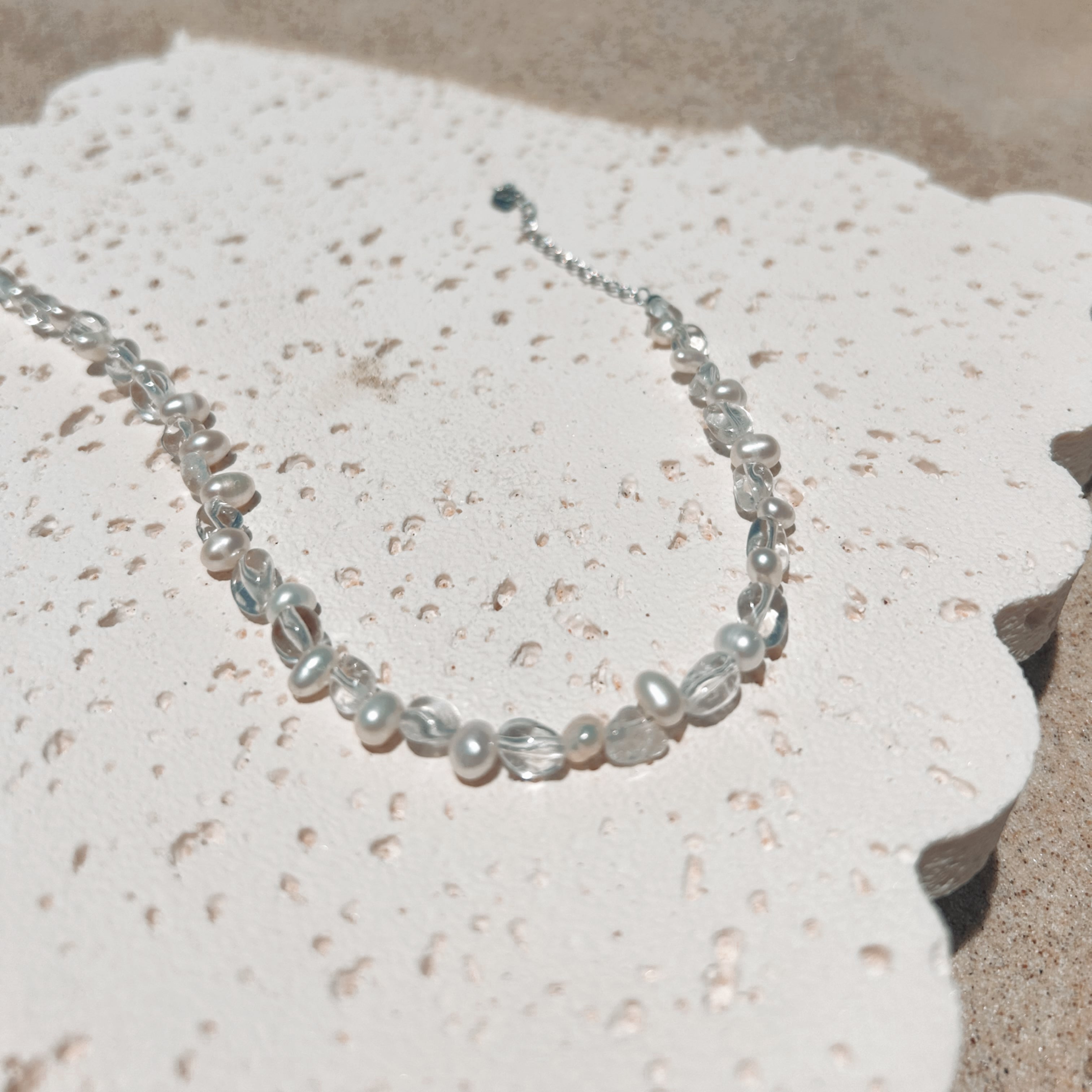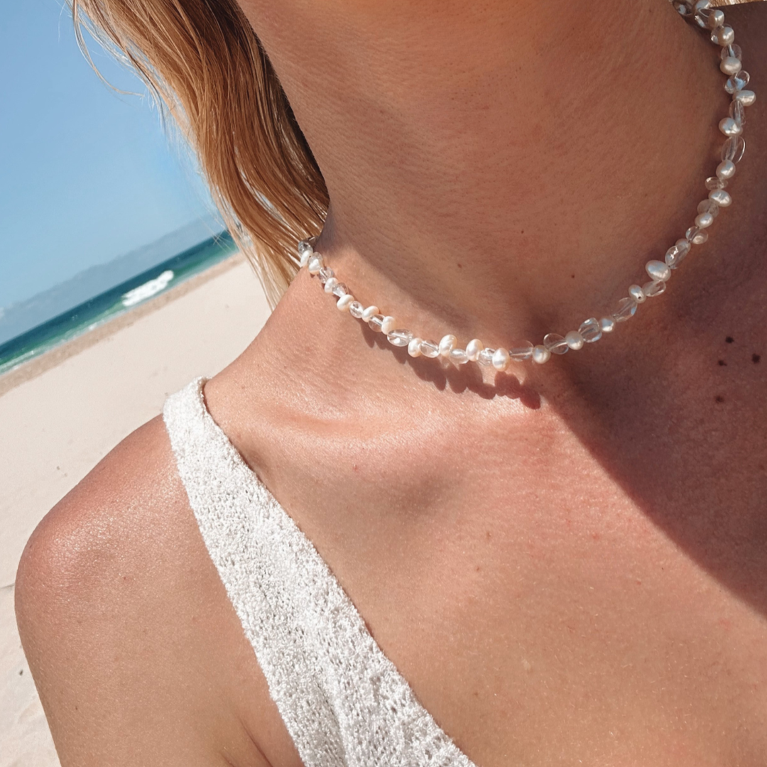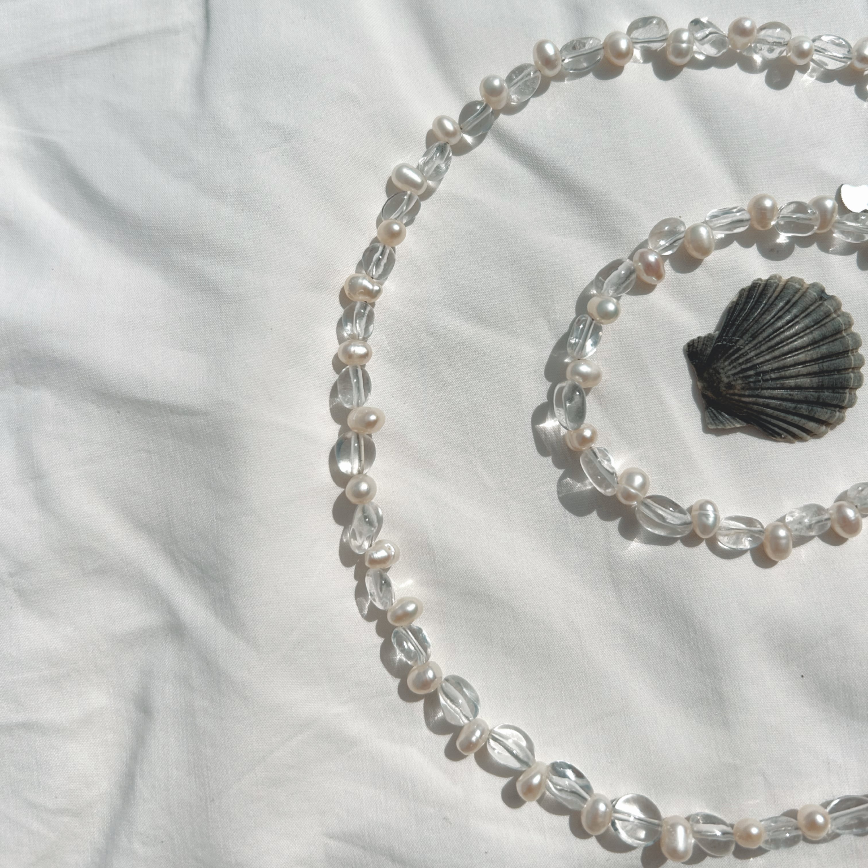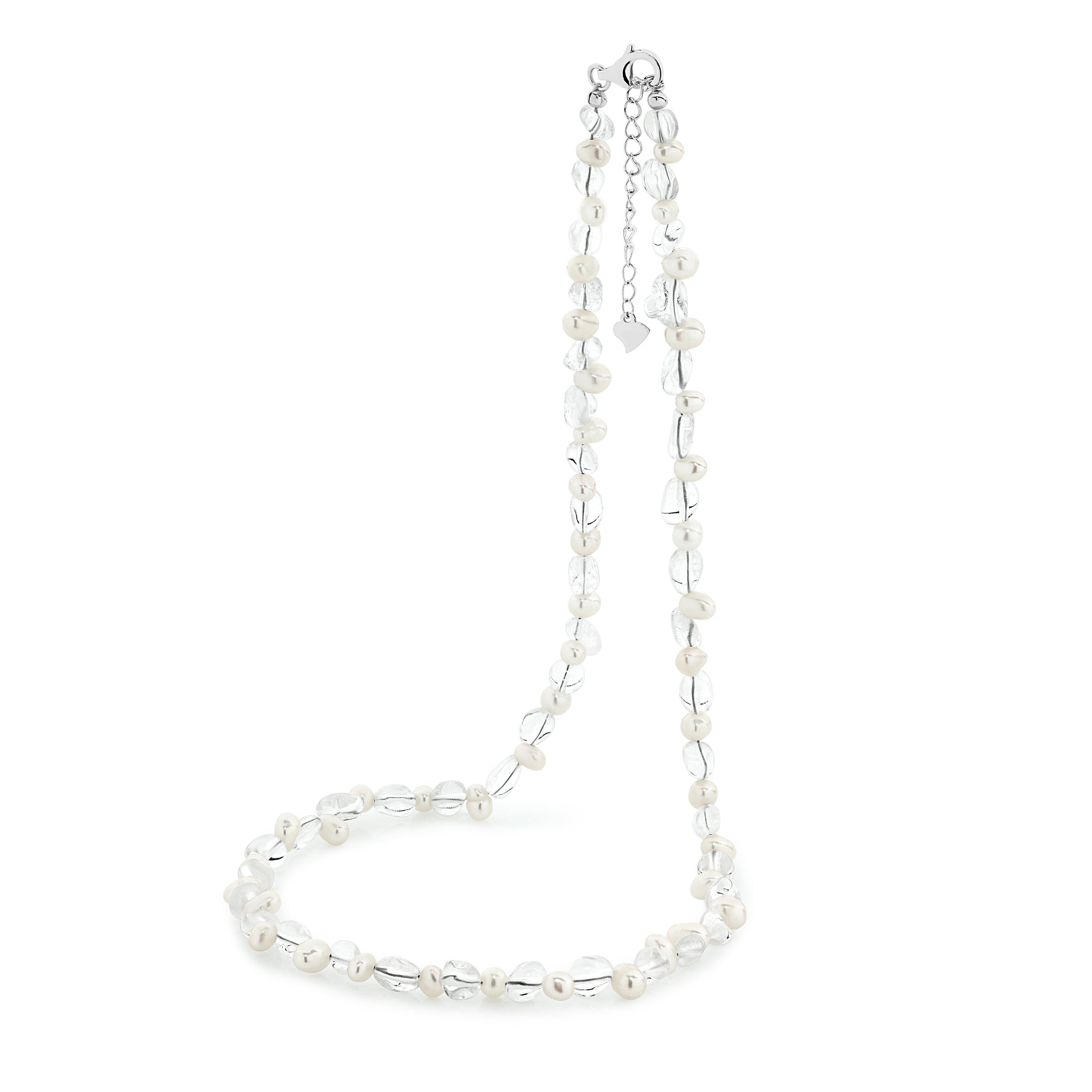 The Romi Necklace is a delicate blend of natural beauty and timeless elegance, perfect for both everyday wear and bridal styling. Featuring clear quartz beads paired with luminous white oval freshwater pearls, this sterling silver necklace exudes effortless sophistication. Whether worn alone for a refined look or layered for added texture, the Romi Necklace is a stunning choice for special occasions, making it a beautiful addition to any jewellery collection—especially for brides seeking a touch of ethereal charm.