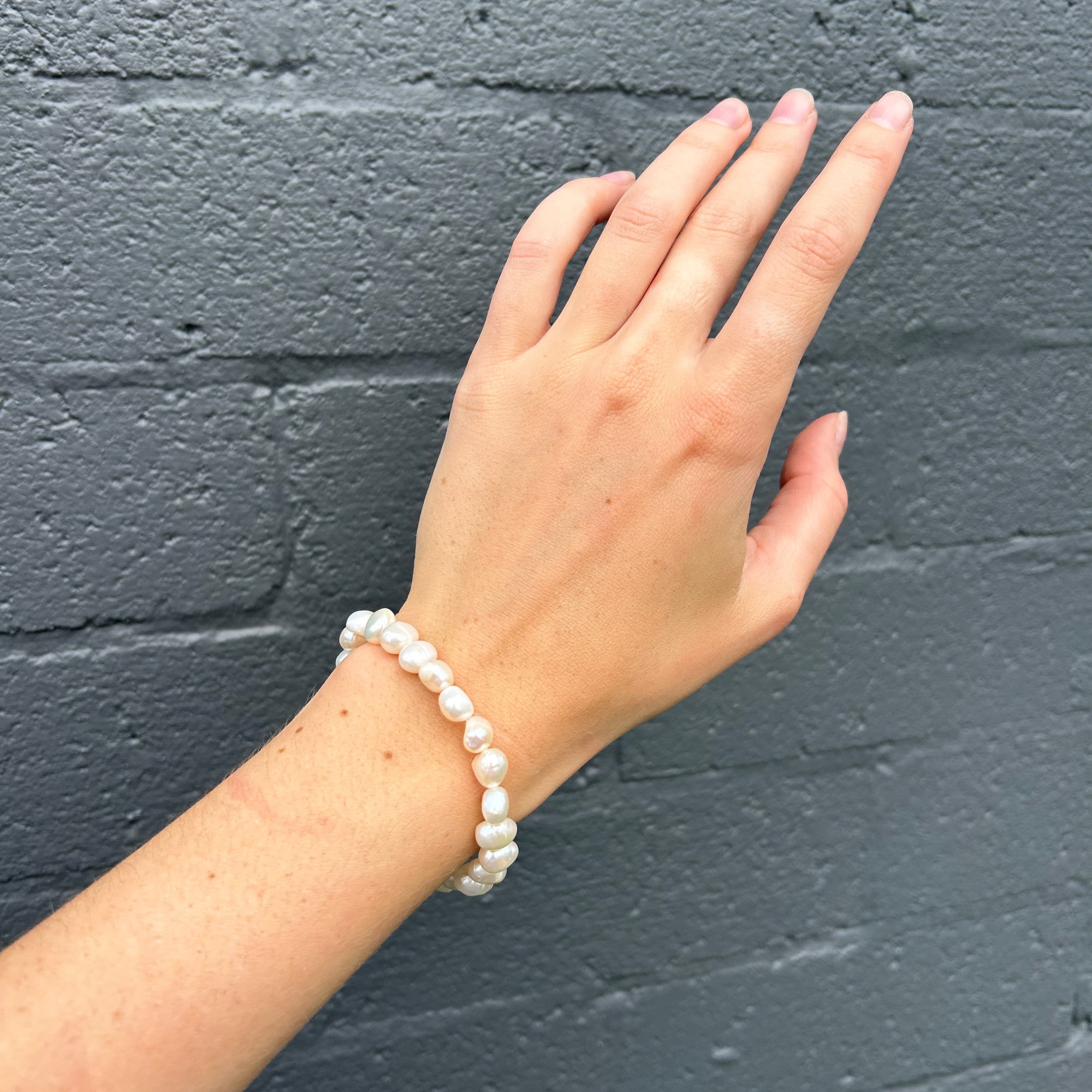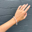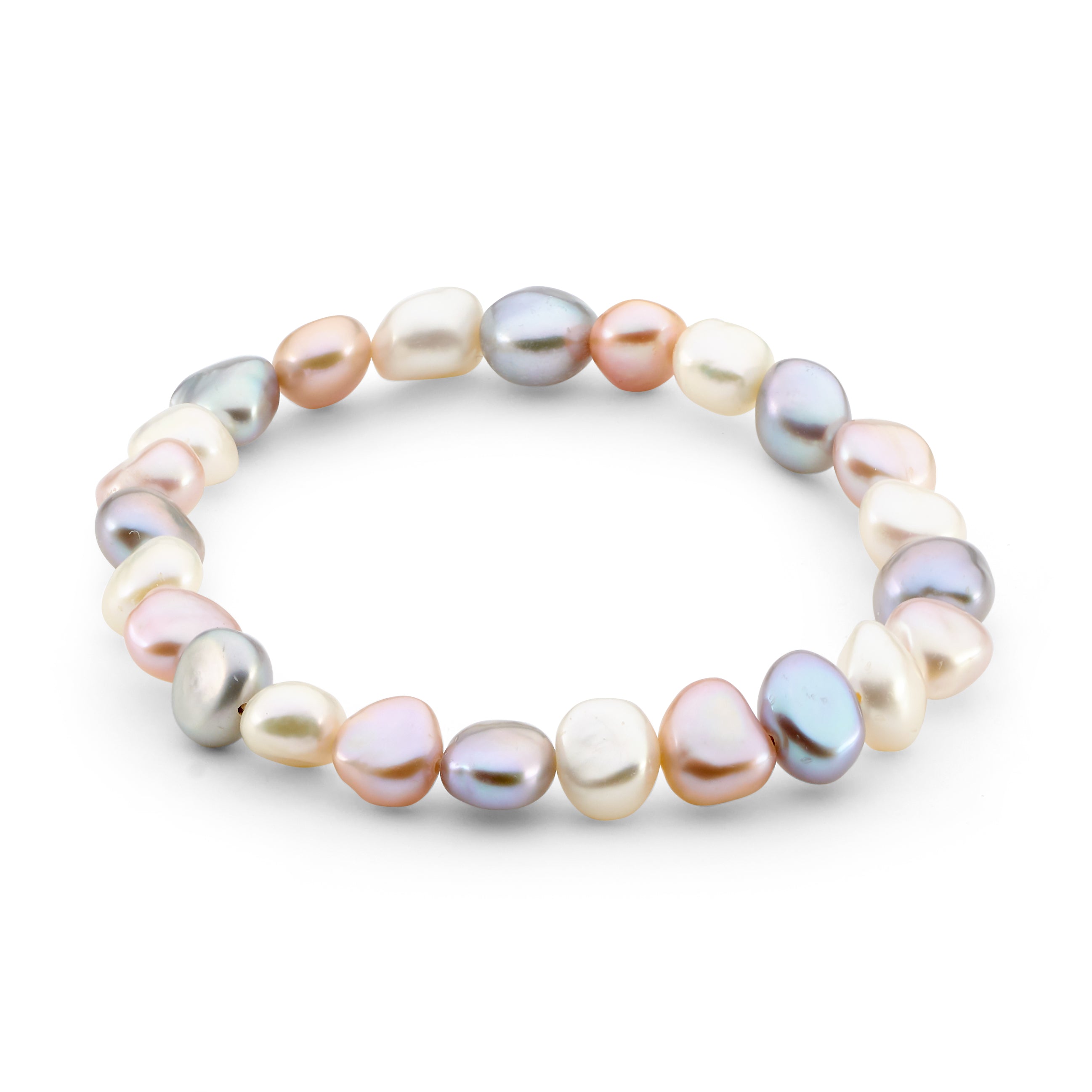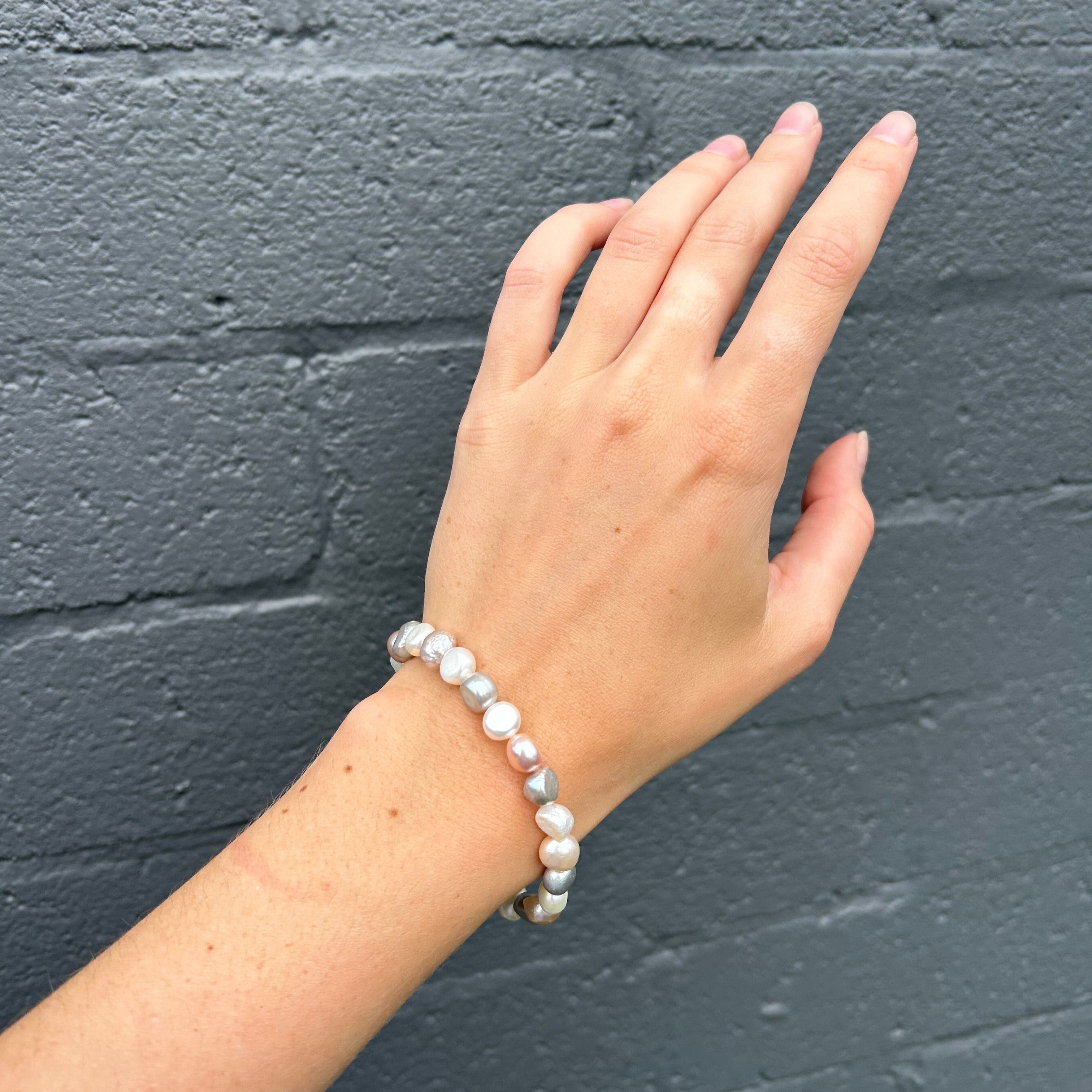 The Audrey Bracelet features organically shaped Keshi freshwater pearls, effortlessly combining versatility and elegance. Available in timeless white, soft grey, multi-pink, or multi-colour, this elastic bracelet is designed to complement any style. With various pearl sizes to choose from, the Audrey Bracelet can be worn as a standalone piece for a subtle touch of sophistication or layered to create a more dynamic look.