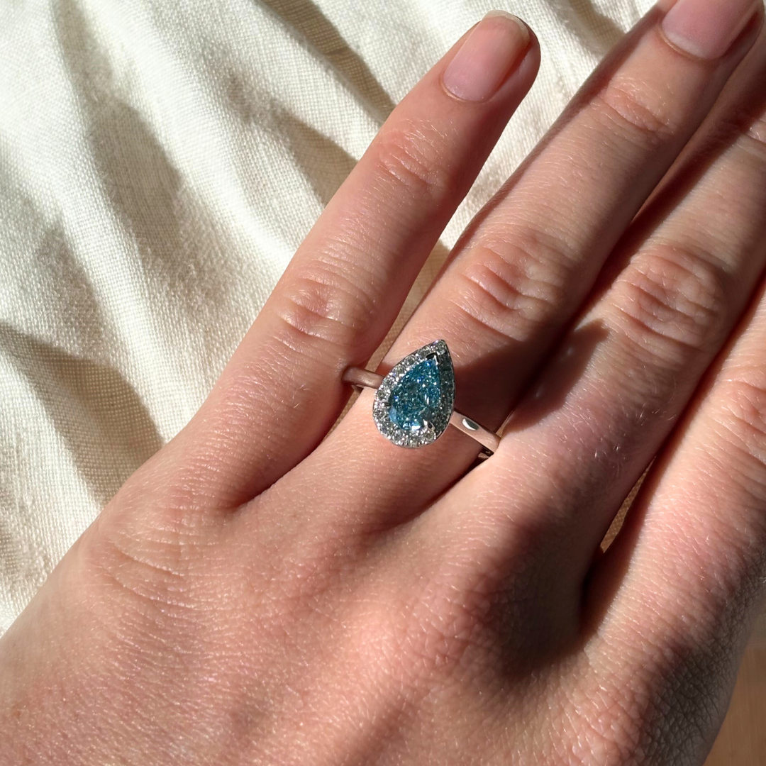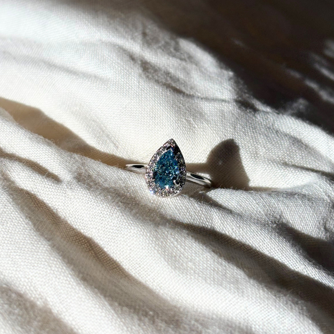 Fancy Blue Pear Lab-Grown Diamond Ring 005