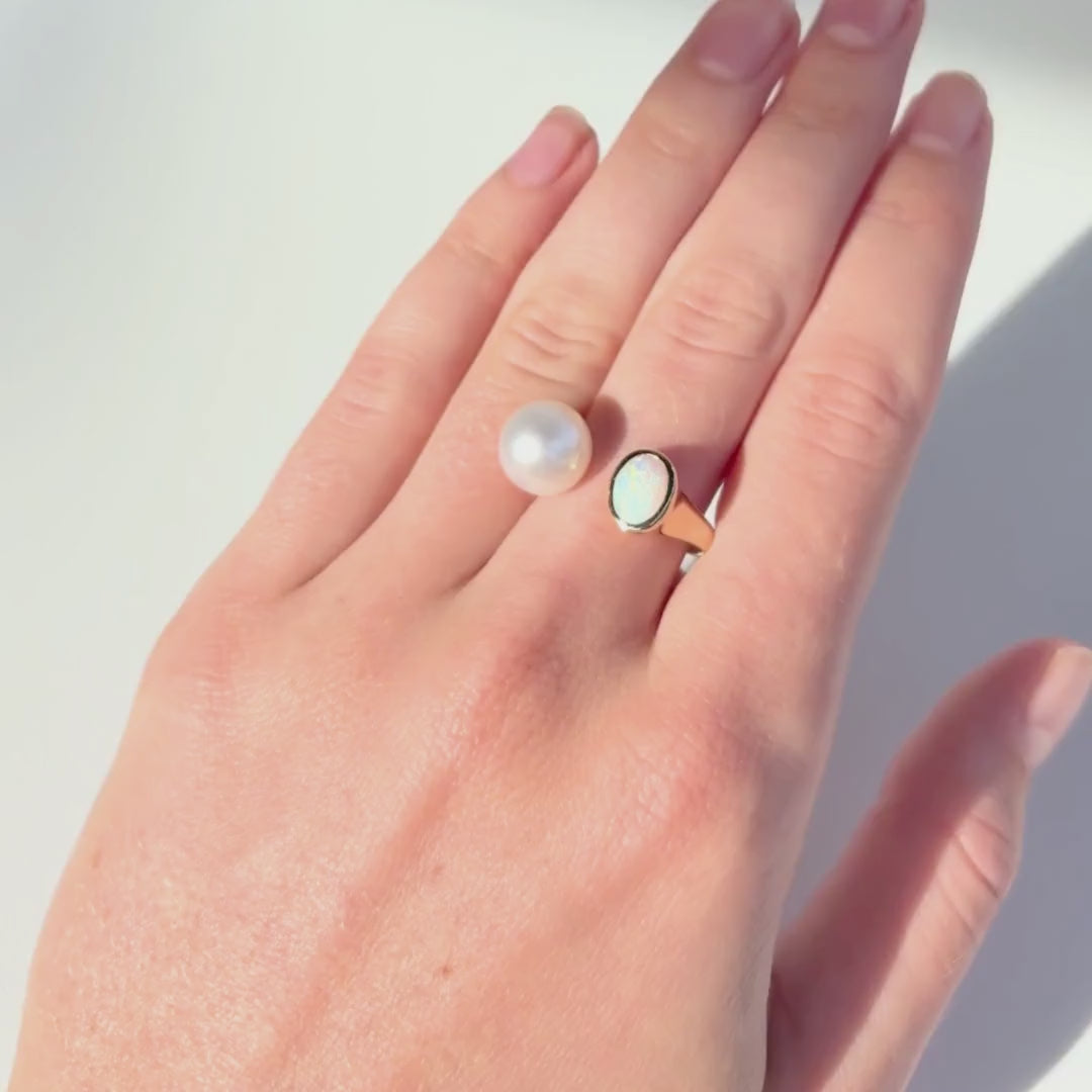 Rainbow Light Opal and Pearl Ring 090