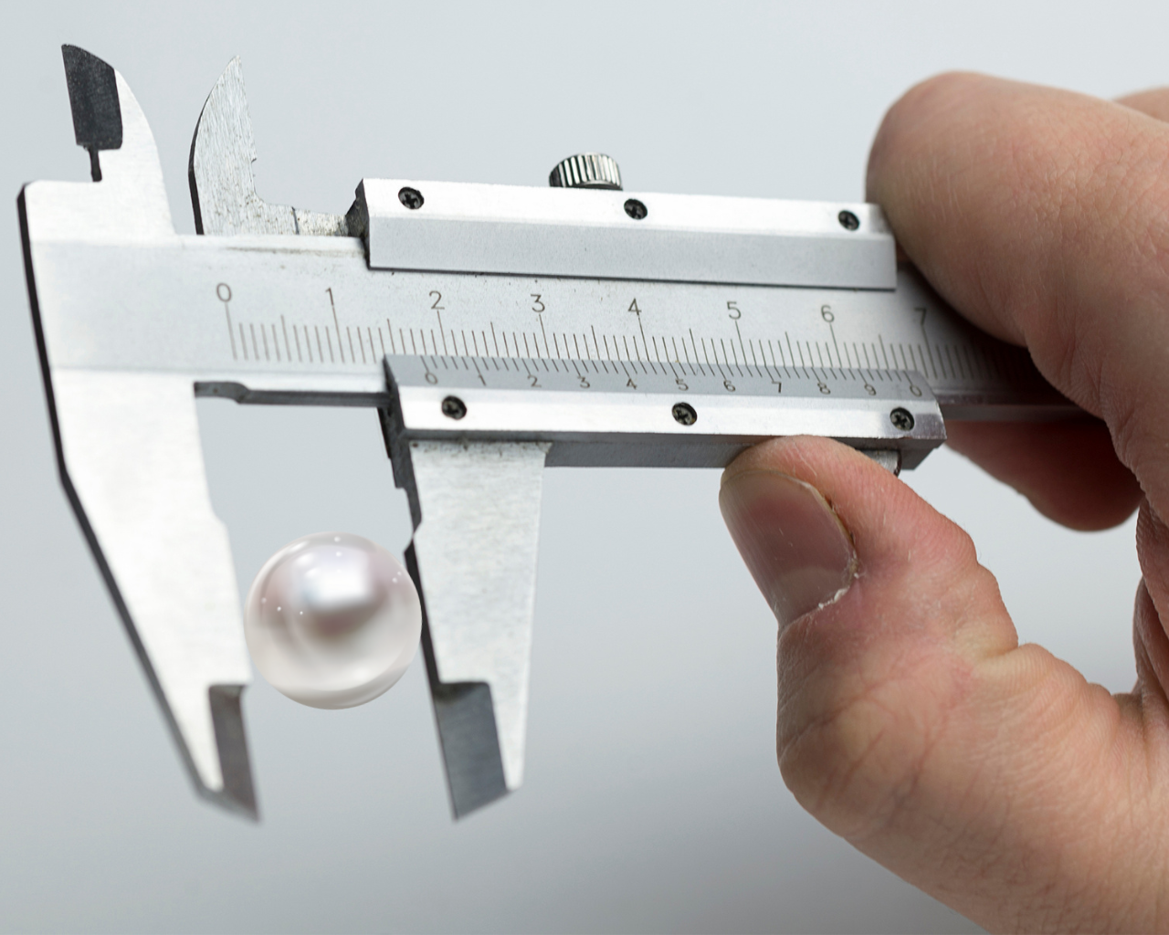 Size is often considered last in the evaluation of a pearl, but it remains a major contributor to its value. Larger pearls are rarer and tend to have higher value, though size can be more important in certain pearl types. The size of a pearl is measured in millimetres, with irregularly shaped baroque pearls requiring different measurement methods. Larger pearls often have thicker nacre, contributing to their lustre and overall quality.