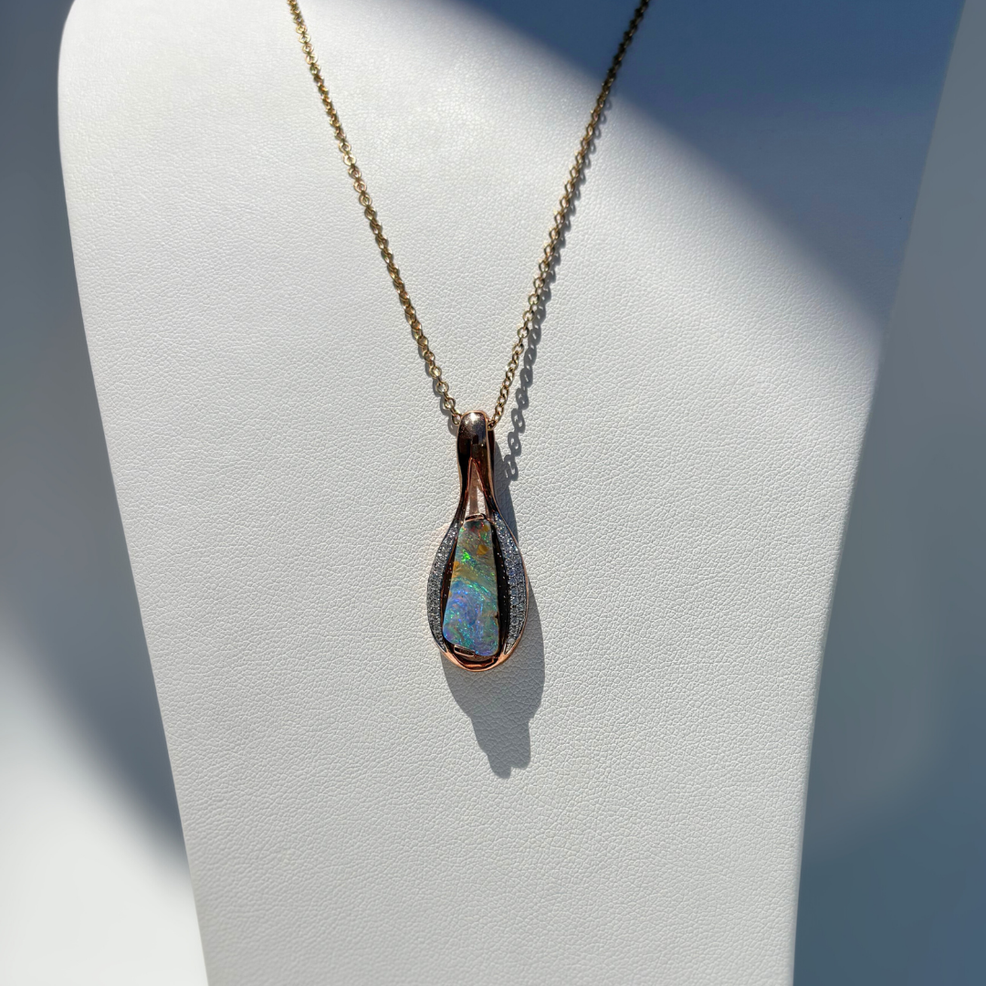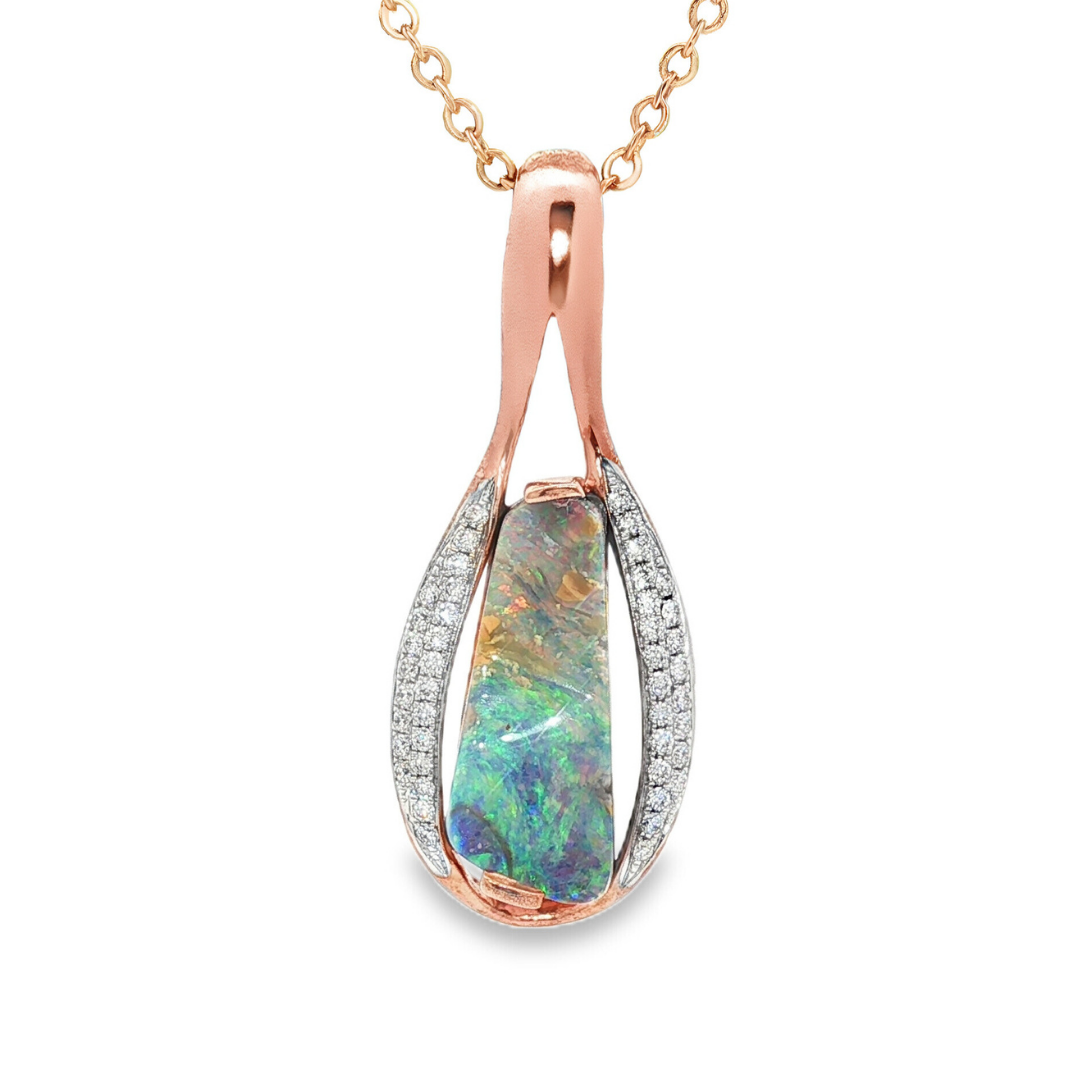 9ct Rg Solid Boulder 3.79ct Opal Diamond Pendant 0.22ct