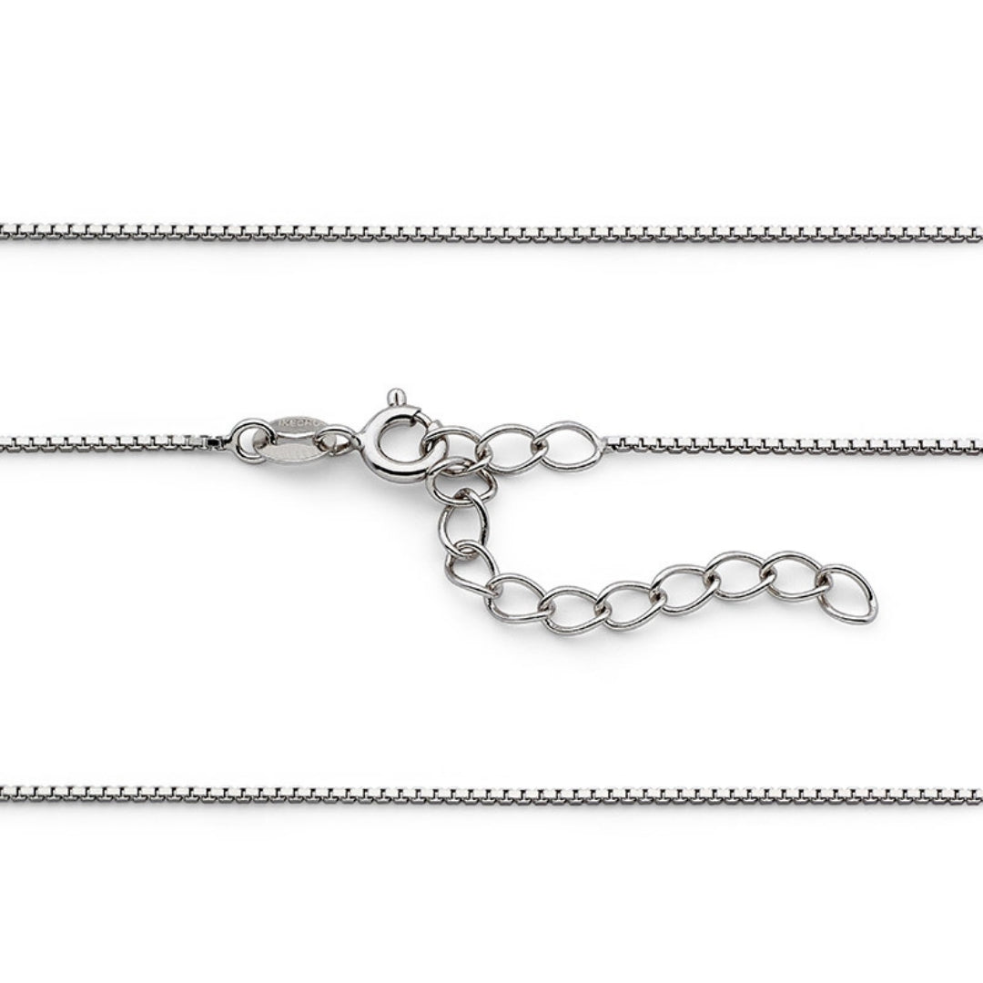 Box chains are adored for their elegant simplicity and robust construction. Featuring square-shaped links with a sleek finish, these chains are perfect for layering, adding pendants, and effortlessly pairing with our sterling silver pendants. Our rhodium plated sterling silver box chains offer a timeless and versatile option.