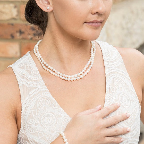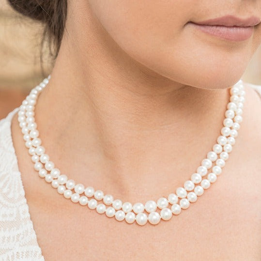 Elevate your style with our exquisite graduated double row freshwater necklace, a flawless fusion of individuality and understated elegance. Featuring a luxurious ball clasp and double strands for added dimension, its effortless versatility ensures it's the ideal choice for every occasion.